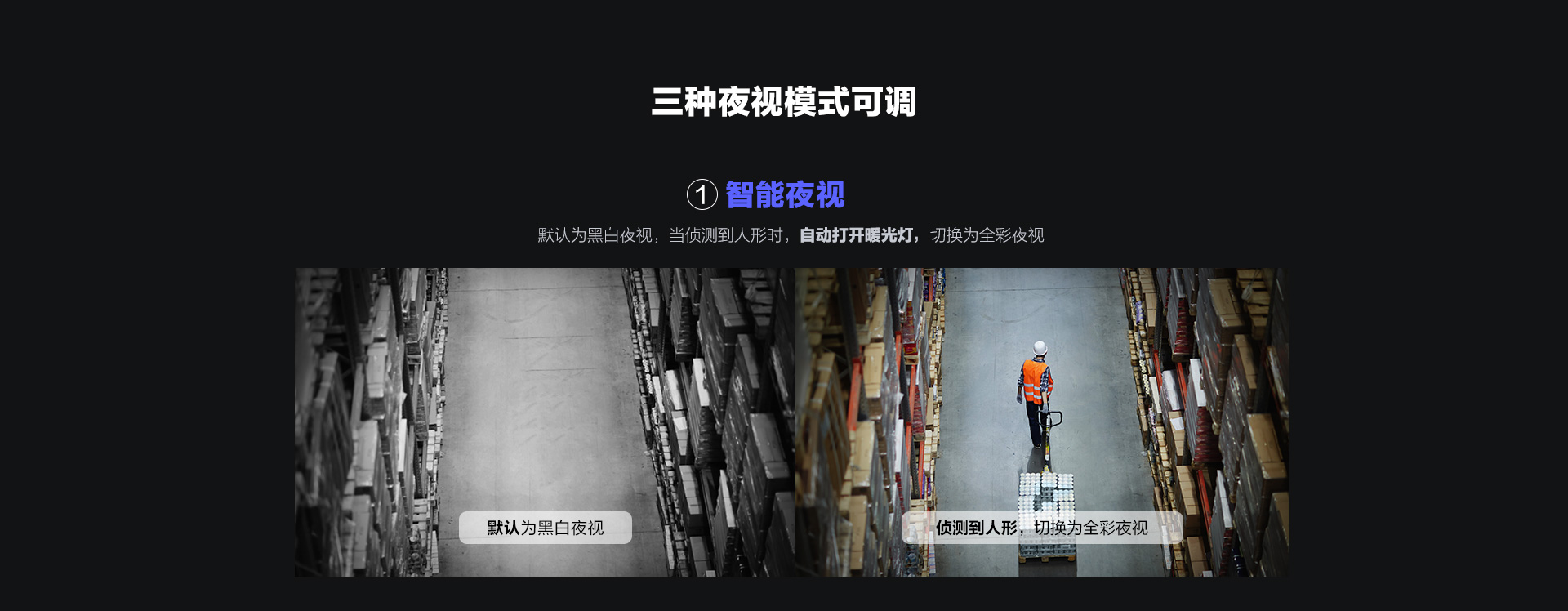 夜晚補光模式 | 白光燈補光、紅外燈補光 | |
