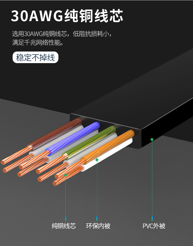 傳輸性能滿足并優于六類標準。完全支持千兆以太網應用,最高傳輸頻率350MHz,為未來應用提供額外帶寬。中心為十字骨架隔離設計,增強了帶寬和網絡性能。導體采用23AWG優質無氧銅線(99.99%);采用鋁箔總屏蔽結構,改善線纜外部串擾及衰減;線纜成軸包裝,保護結構穩定。